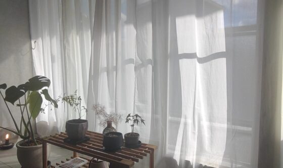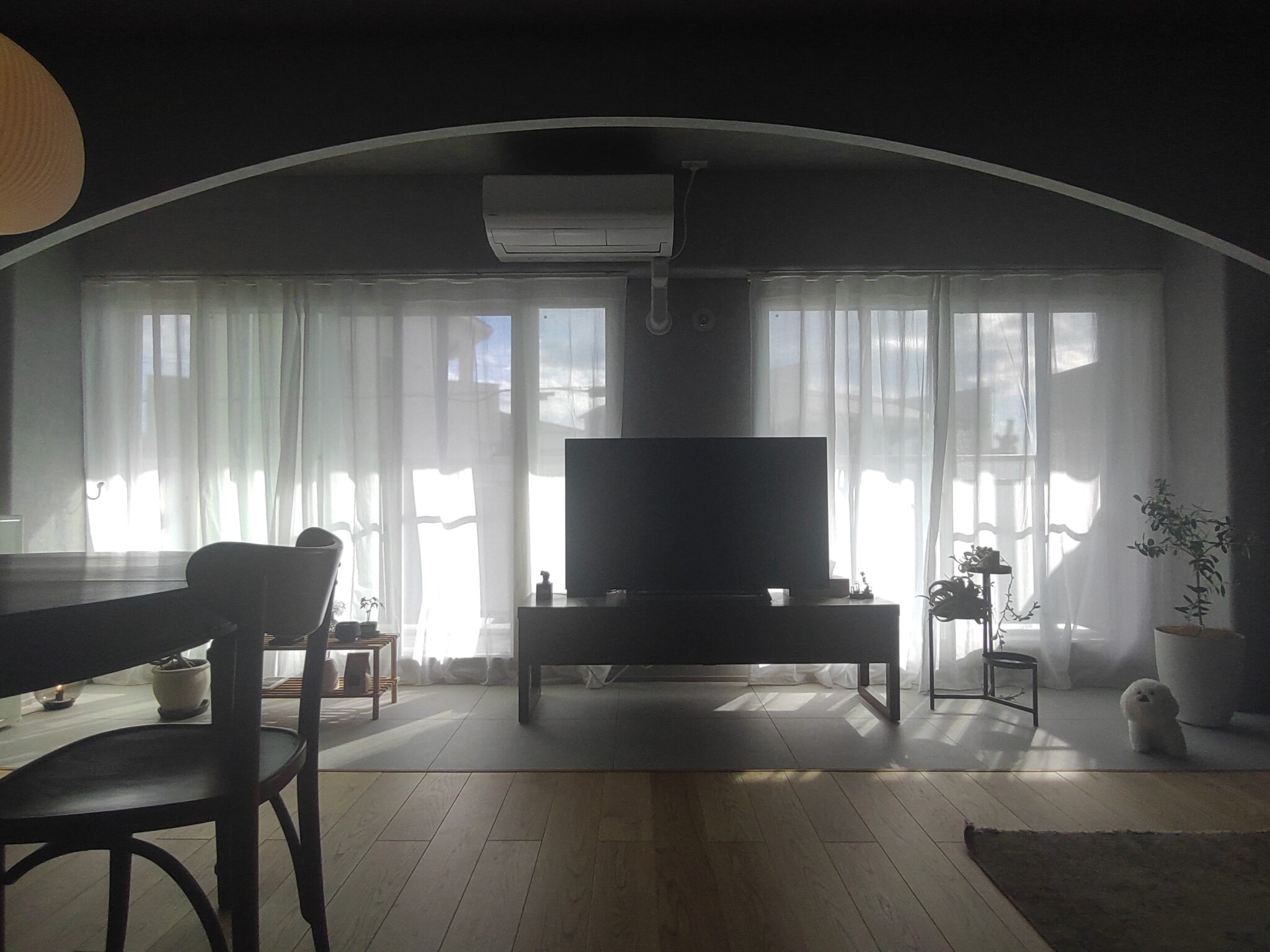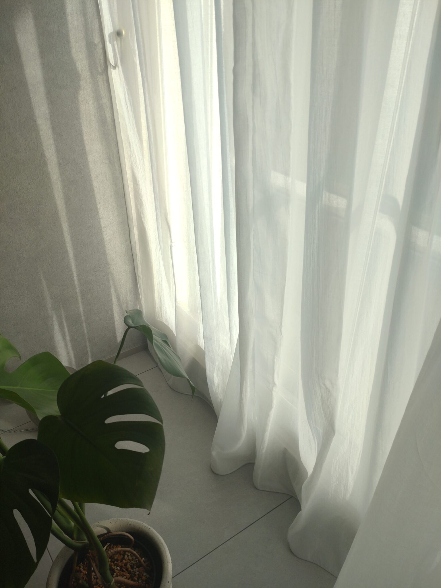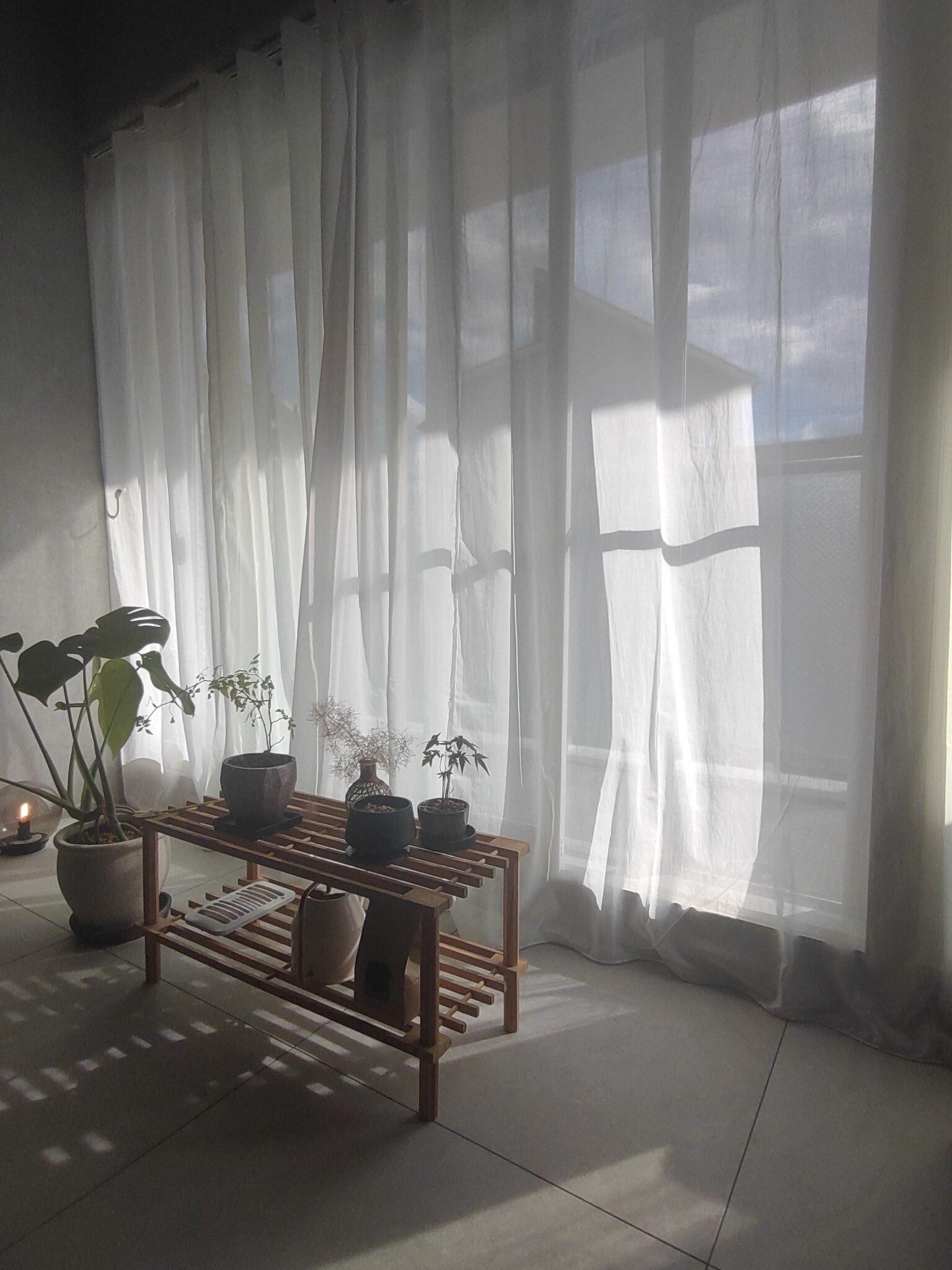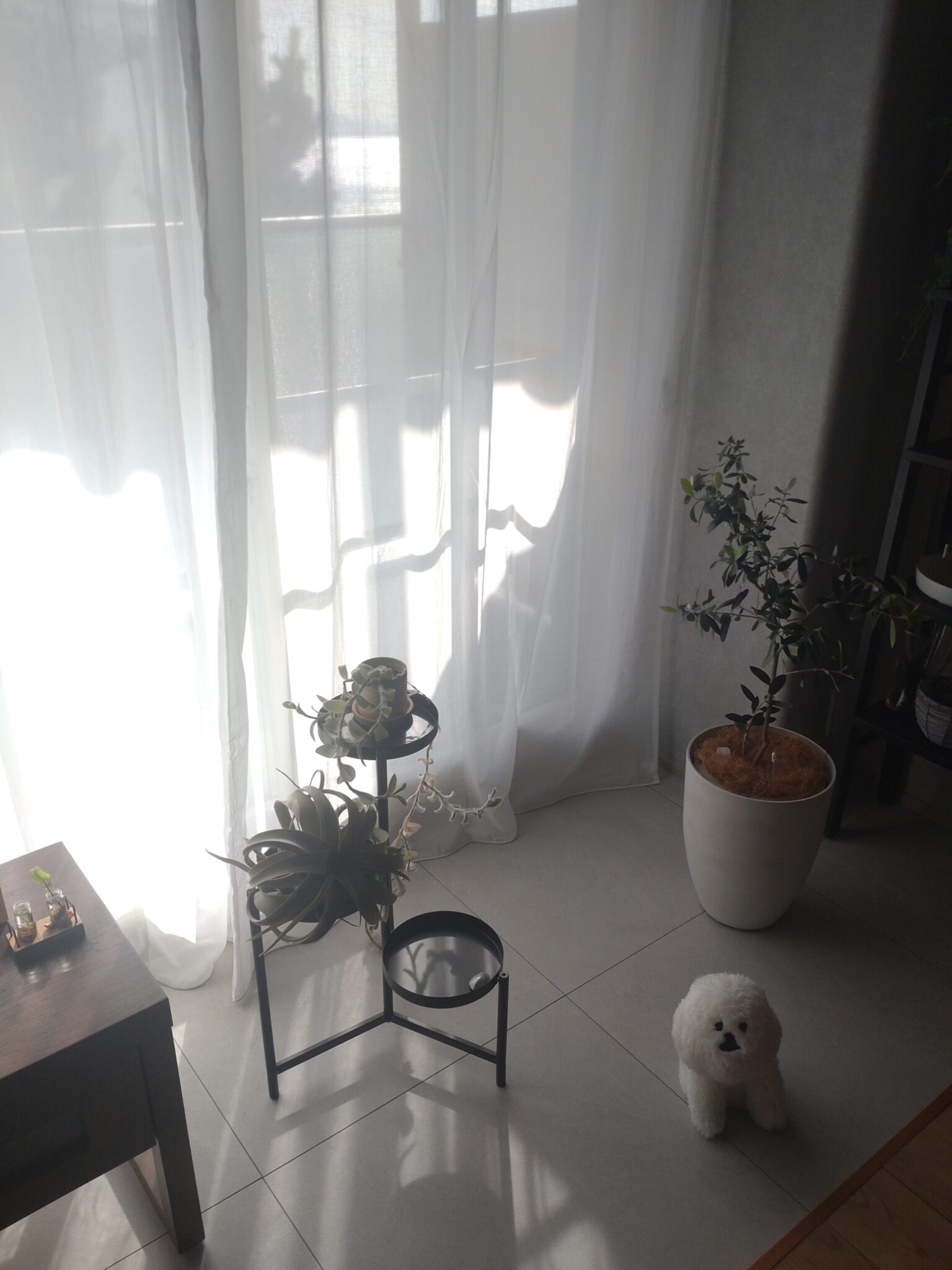 舞台の幕が静かに開くような、軽やかな窓辺に整えました。