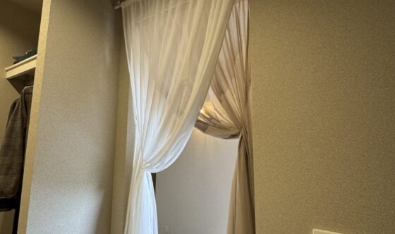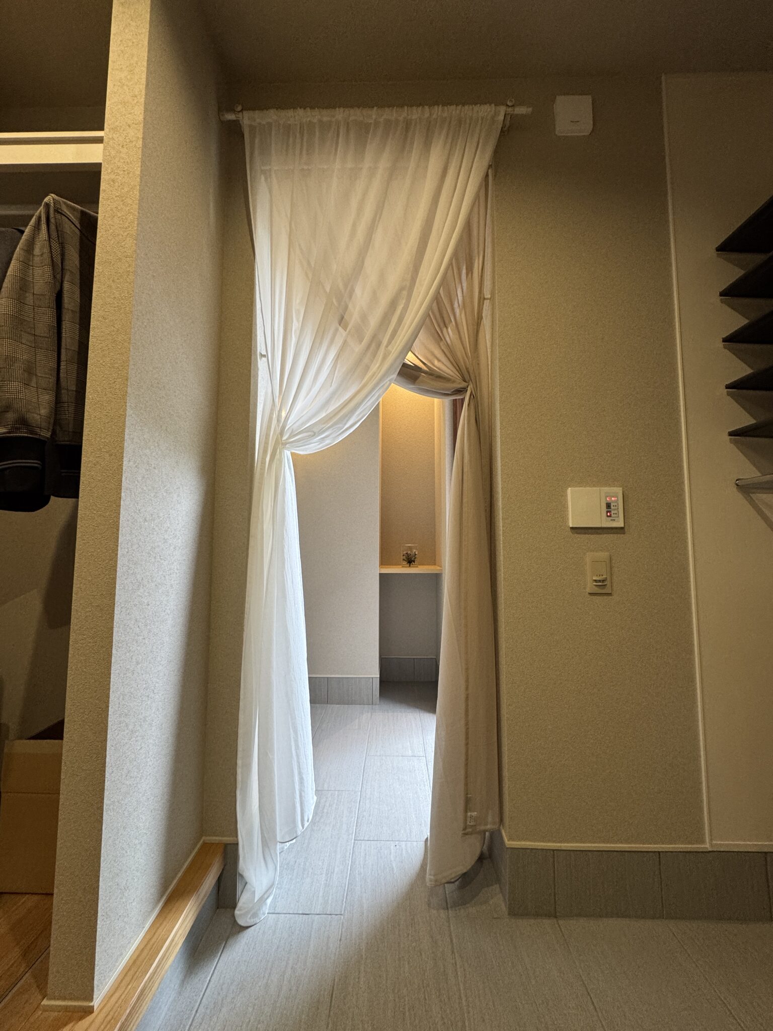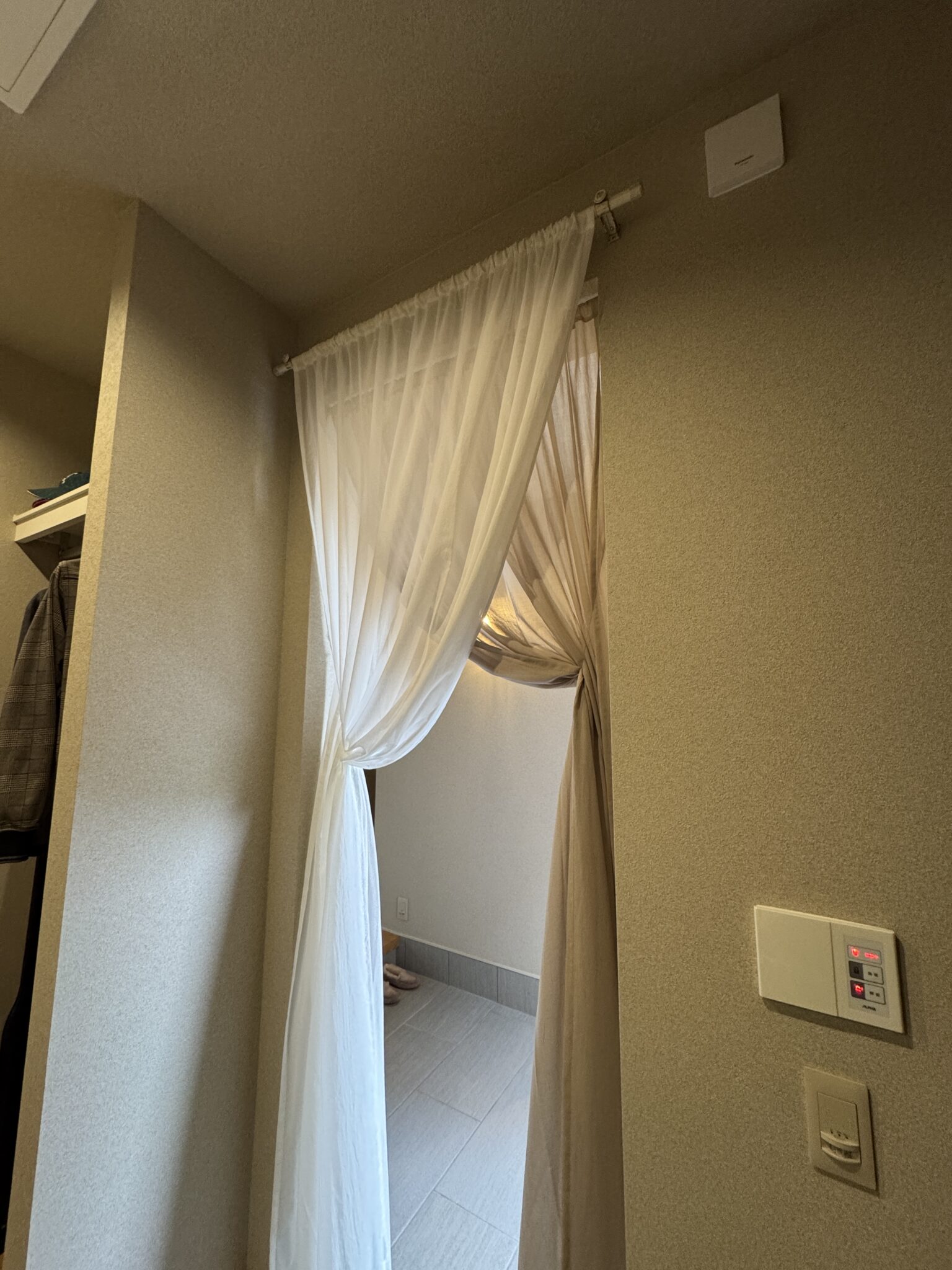 扉を開けているとキッチン側から光が入り、薄手のものだと奥が透けて見えてしまうため、