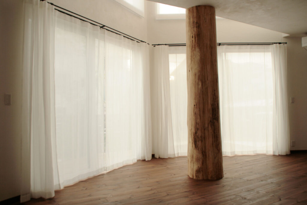 [静岡県浜松市] 吹き抜けの大きな窓にコットンシフォンのカーテン