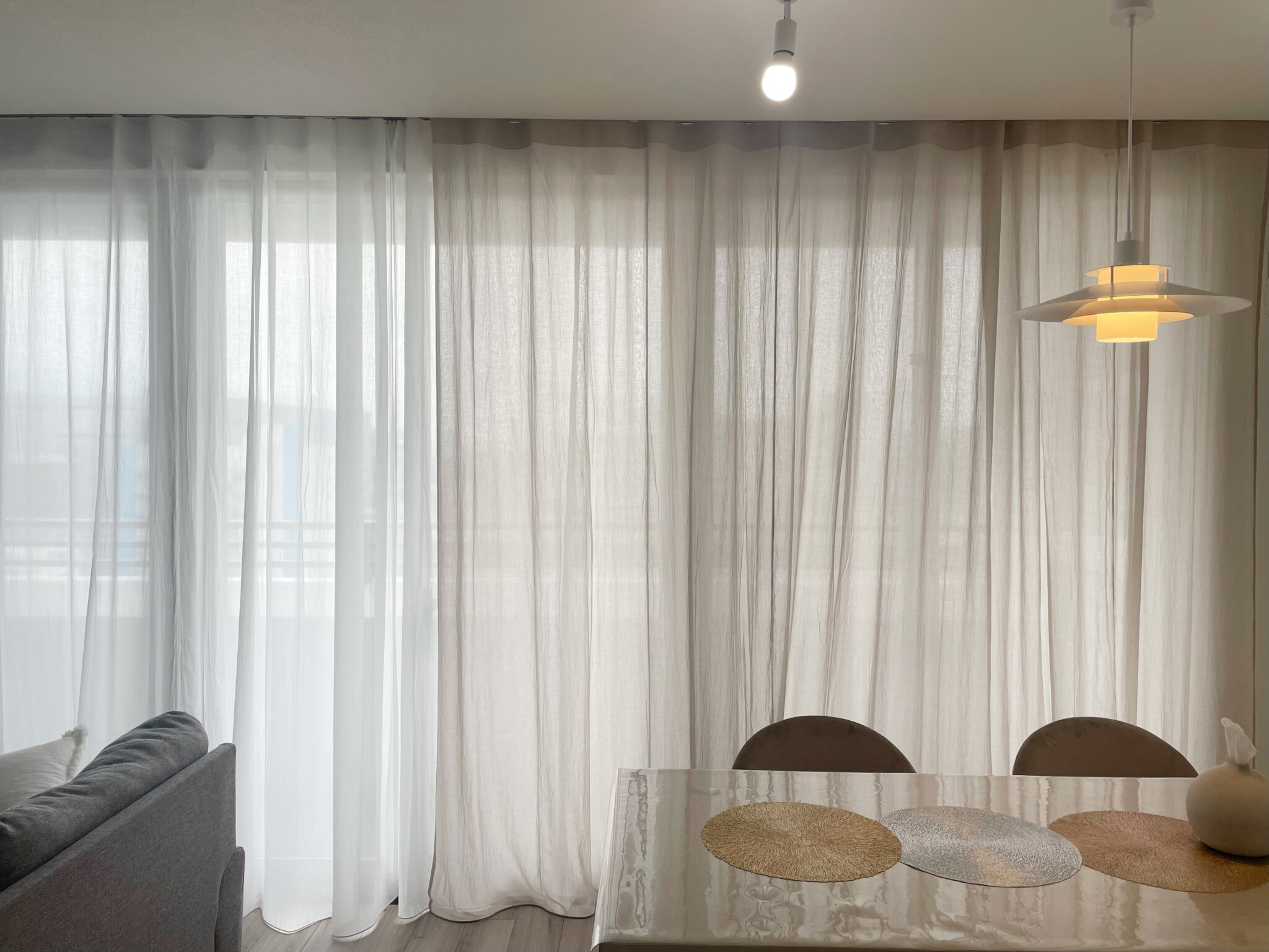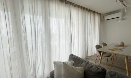 朝の光、夕日、照明の光、加える光で表情や色味が違って見えるのがコットンシフォンの魅力。