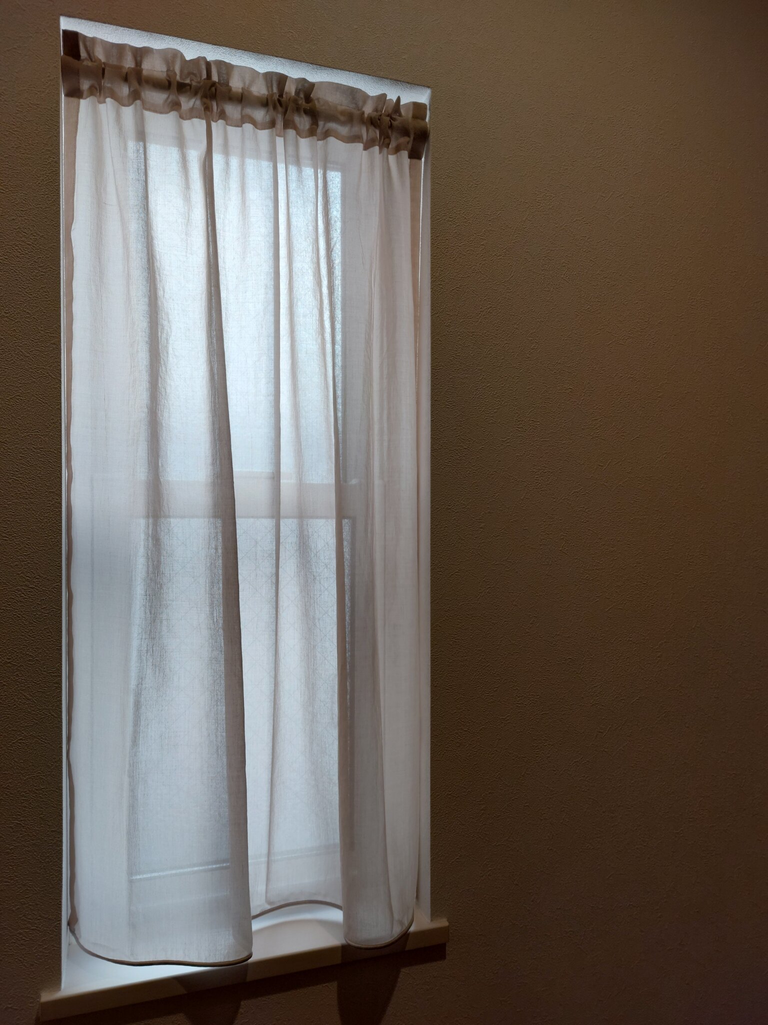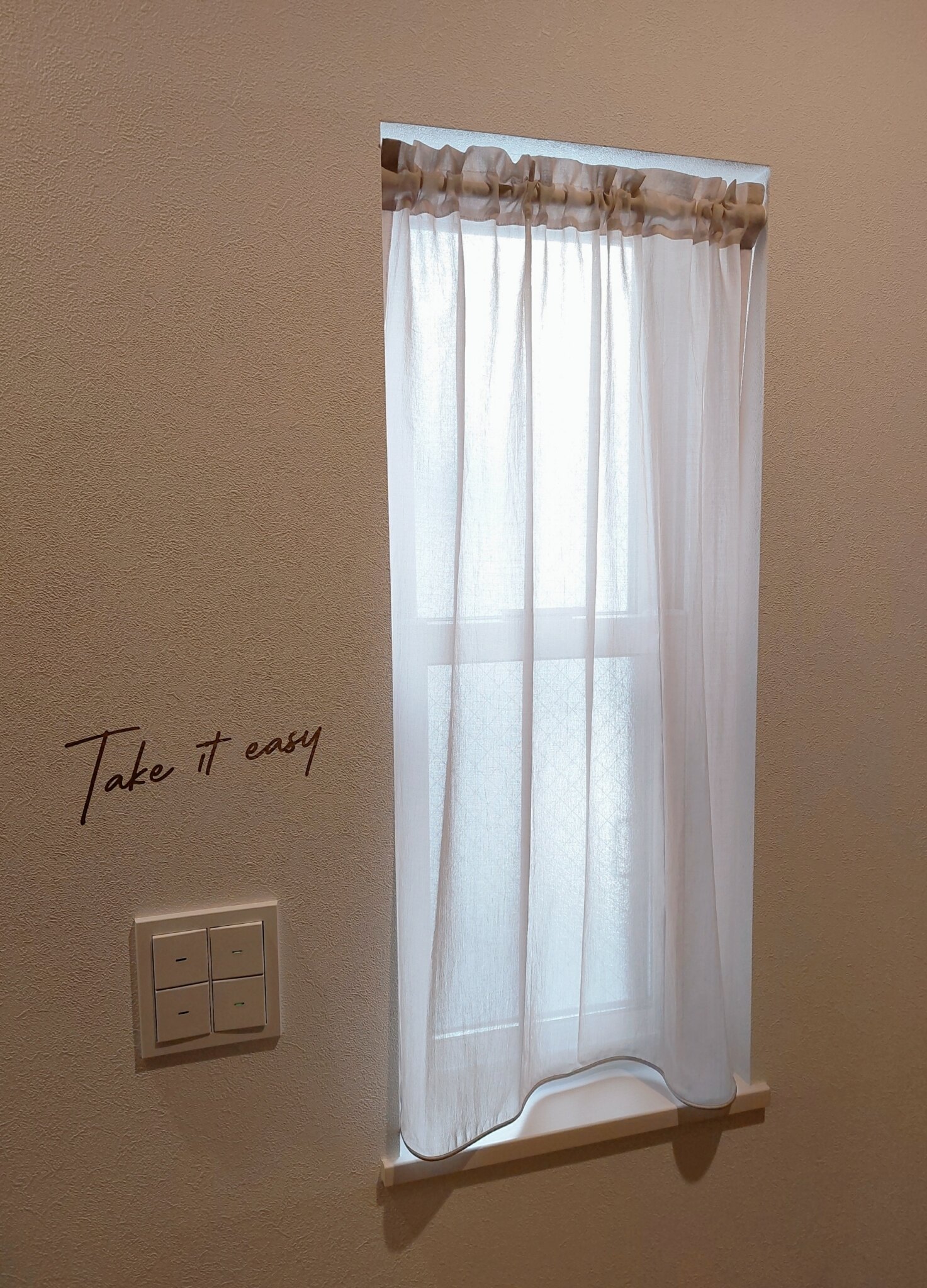 無機質な印象を与えやすい小窓でも、コットンシフォンがあるだけでおしゃれに。