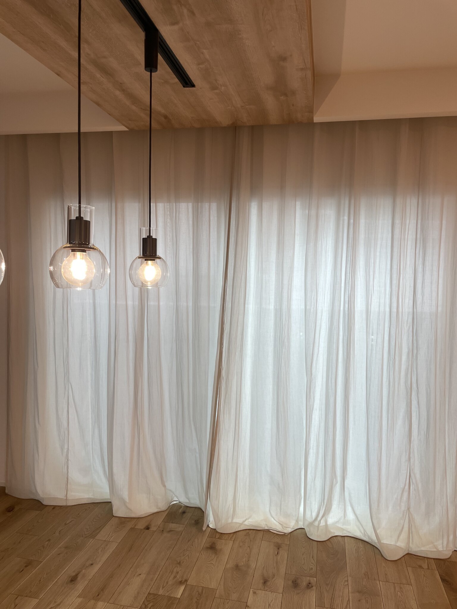 日中の窓辺は、ドレープを開けてレースだけを閉めるのが定番かもしれません。