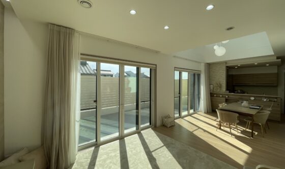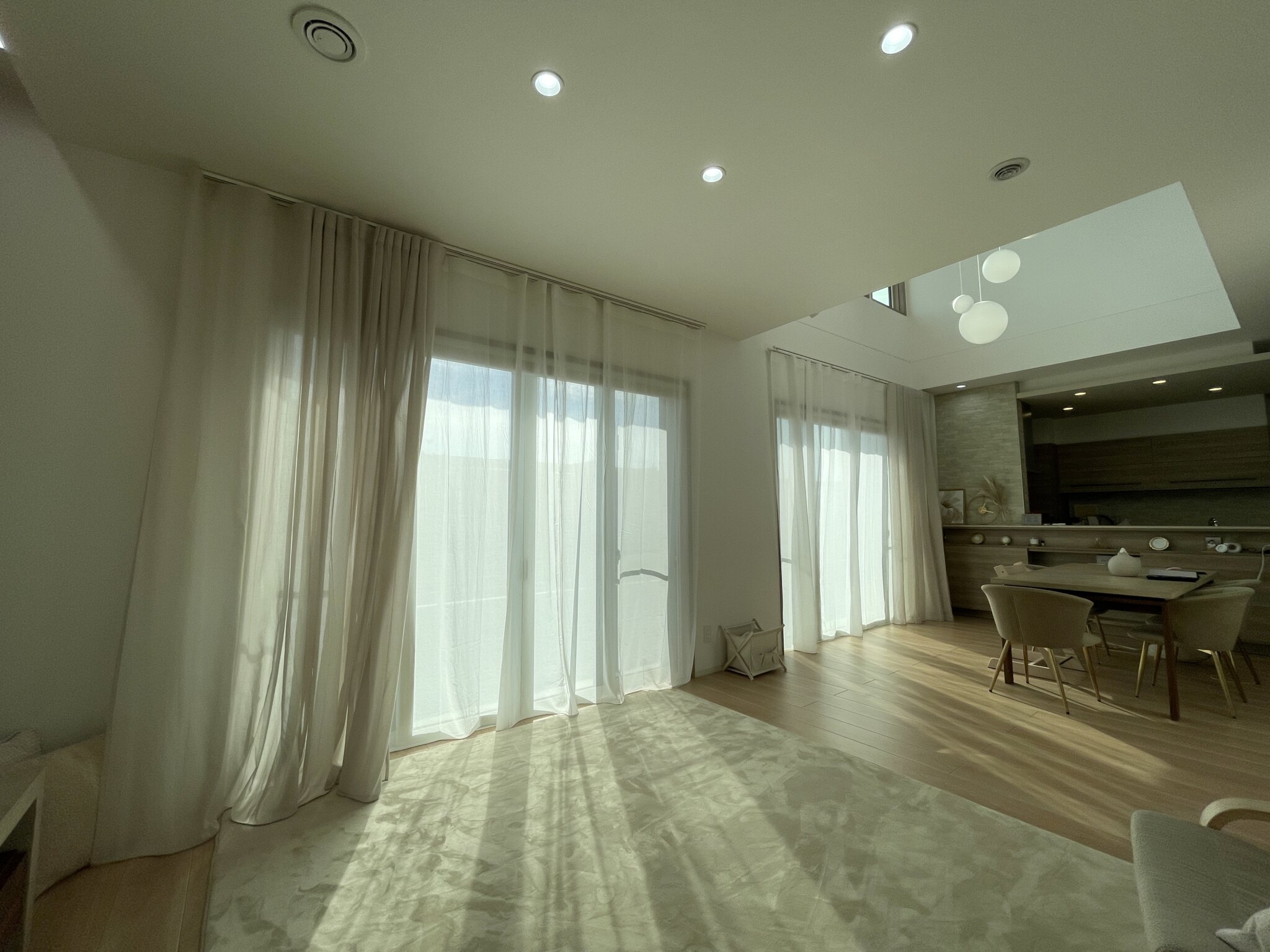 吹き抜け側もその高さに揃えることで,空間全体が整い、美しく見える仕上がりに。