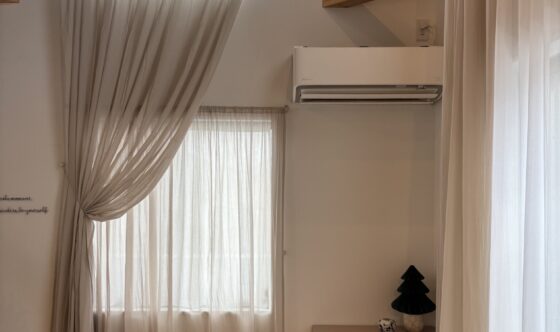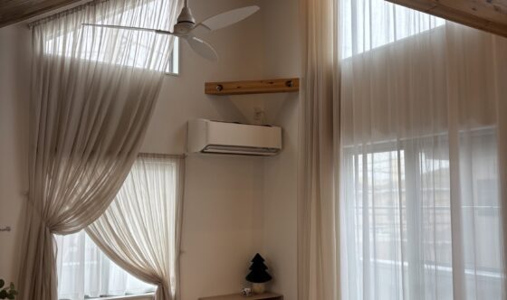 カーテンが空間の印象をどのように変えてくれるかの好事例としてのご紹介です。