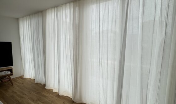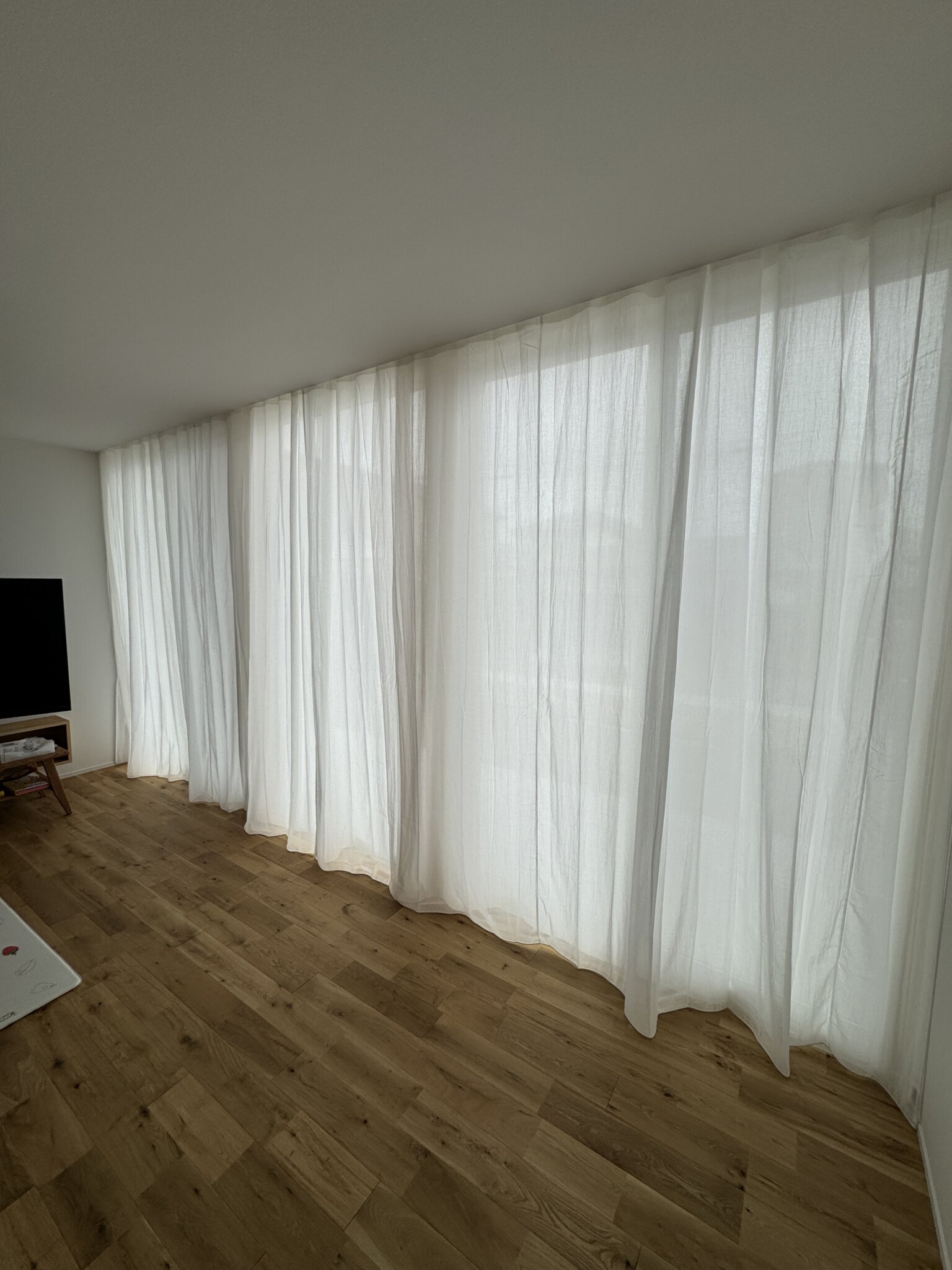 コットンシフォンの2枚使いでしたら、やわらかな質感が広さと明るさを引き立て、やさしい光に包まれた居心地の良いリビングにしてくれます。