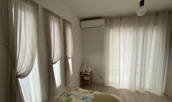 幅のない縦長の窓は、基本的にはカーテンが似合わないので、