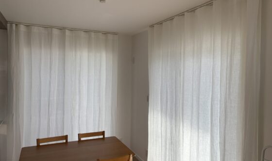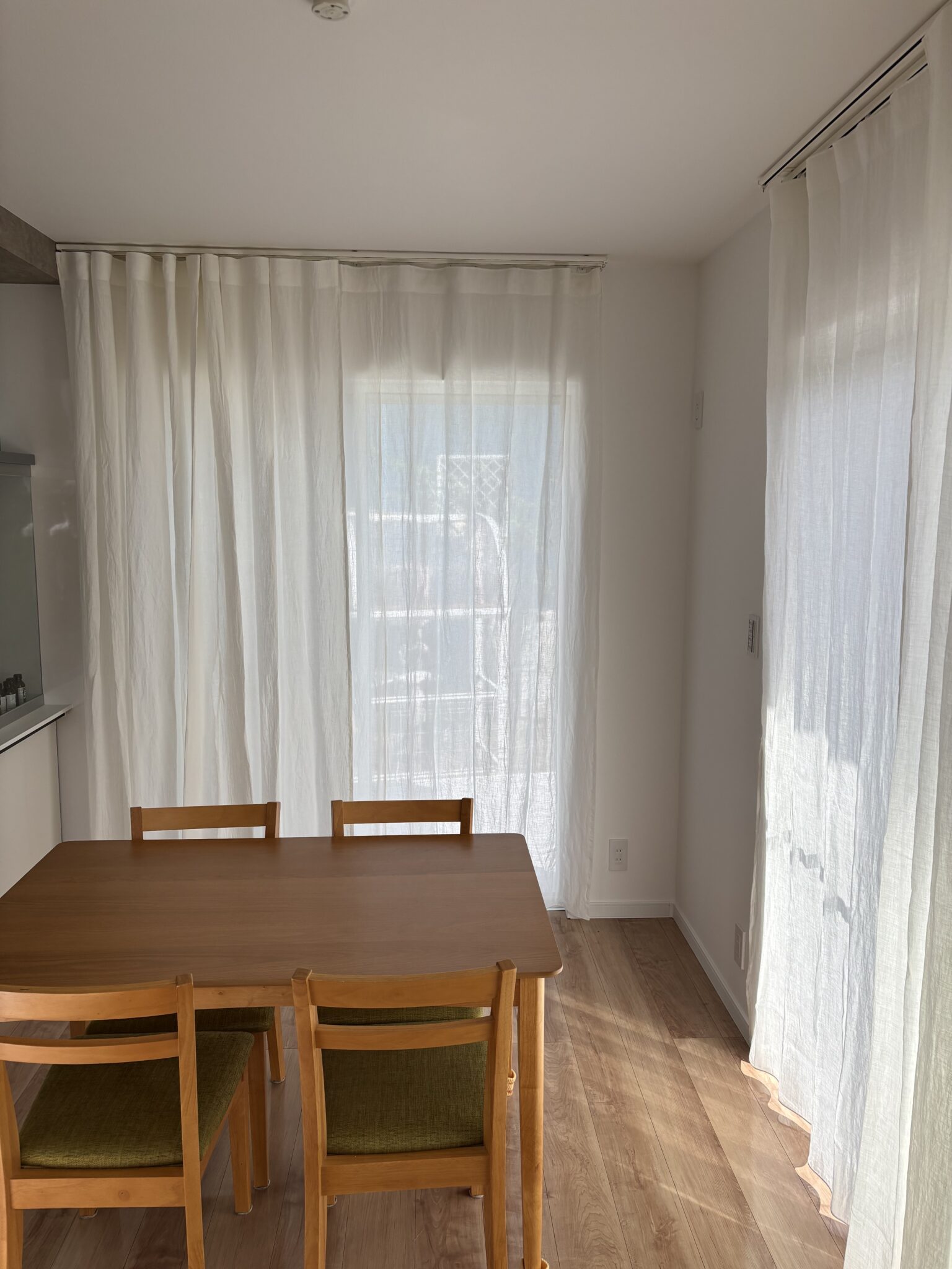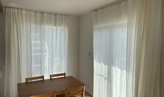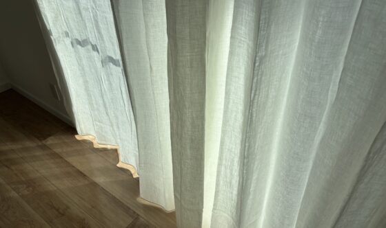 このような場合は、コーナーにカーテンの溜まりが来ないように、