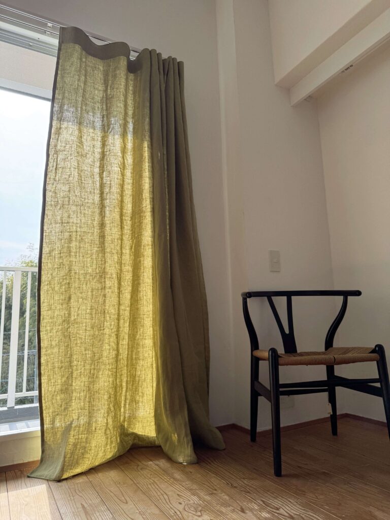 リネン特有のくすんだ色合いは、上品で落ち着いた空間を演出してくれます。