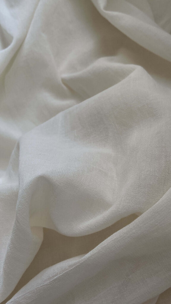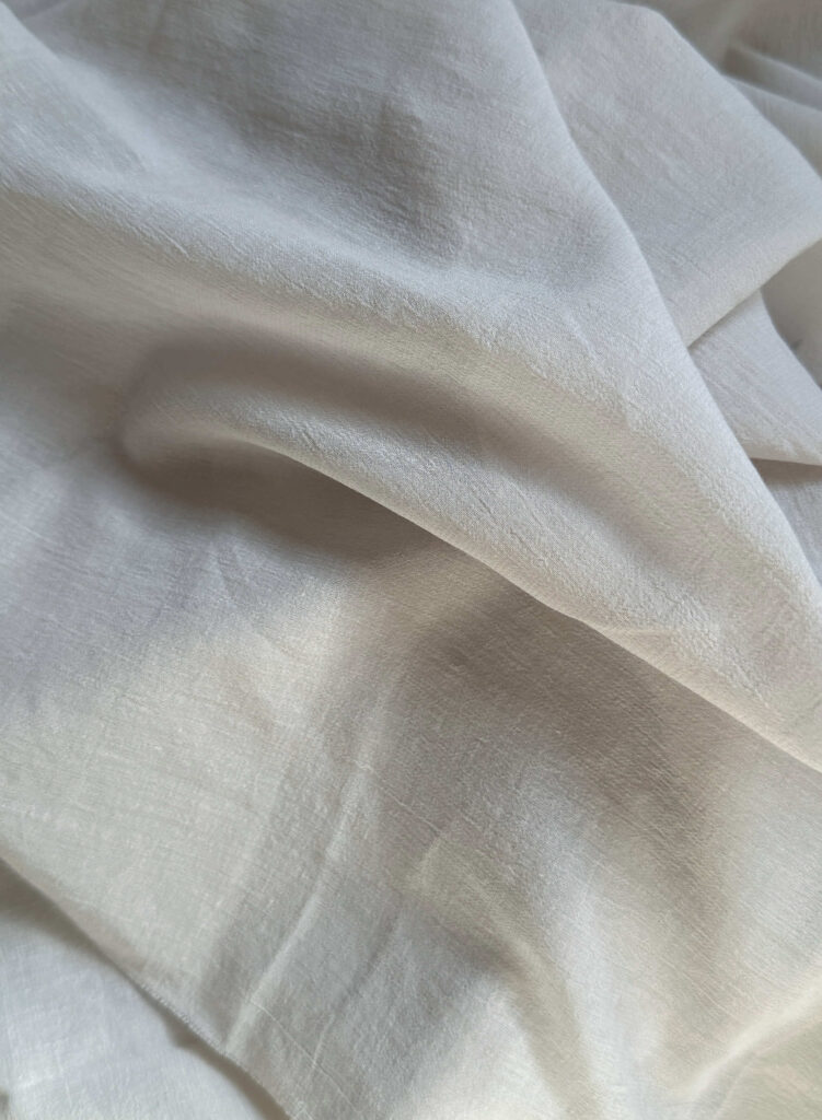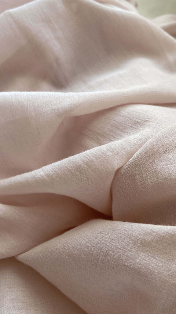 ふわふわの柔らかい手触りと、薄く透けてみえる細かい縮緬(ちりめん)ジワが特徴です。