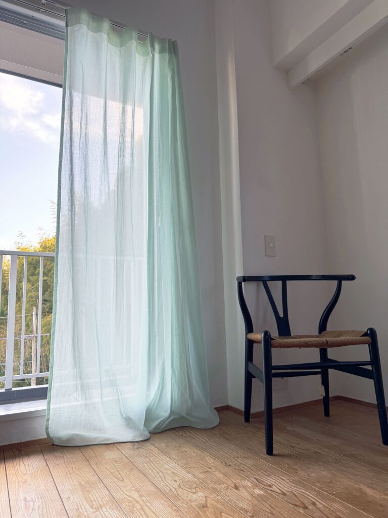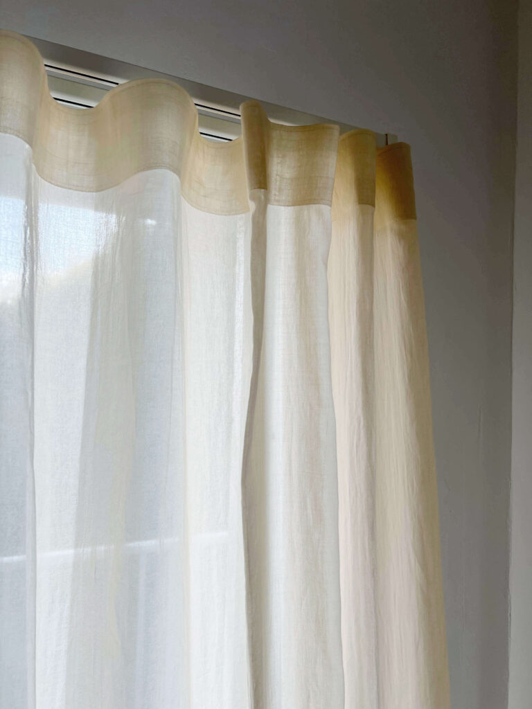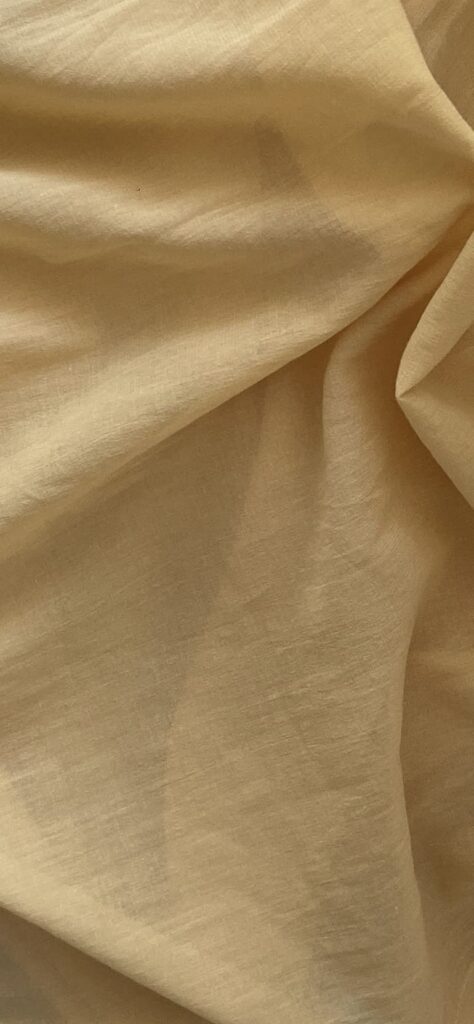 発色の美しさも特徴のひとつで、光を透かしてパステルカラーのような淡い色になり、生地の重なりによる濃淡で美しいドレープを描きます。