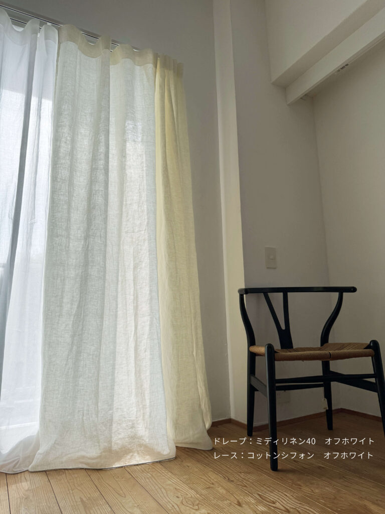 あまり重い感じにしたくない空間のドレープカーテンや、