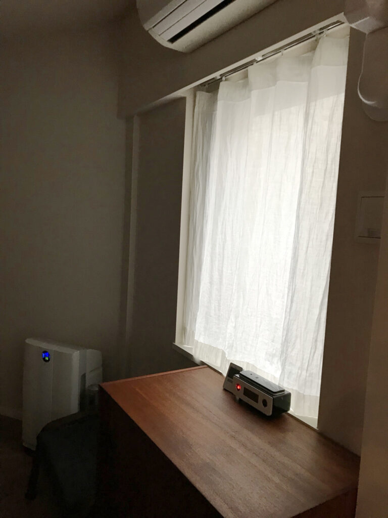 夜間はさすがに1枚だと人影がうっすら透けて見えますが、シャッターのあるお宅などでしたら、シアーリネン80を1枚だけ、というのも軽快な感じで良いかもです。