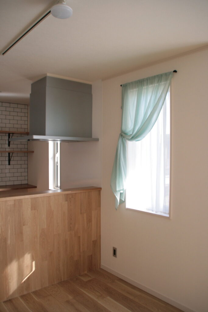 リビングダイニングに、爽やかな淡い光を届けてくれるミントグリーンのカーテンをお届けしました。