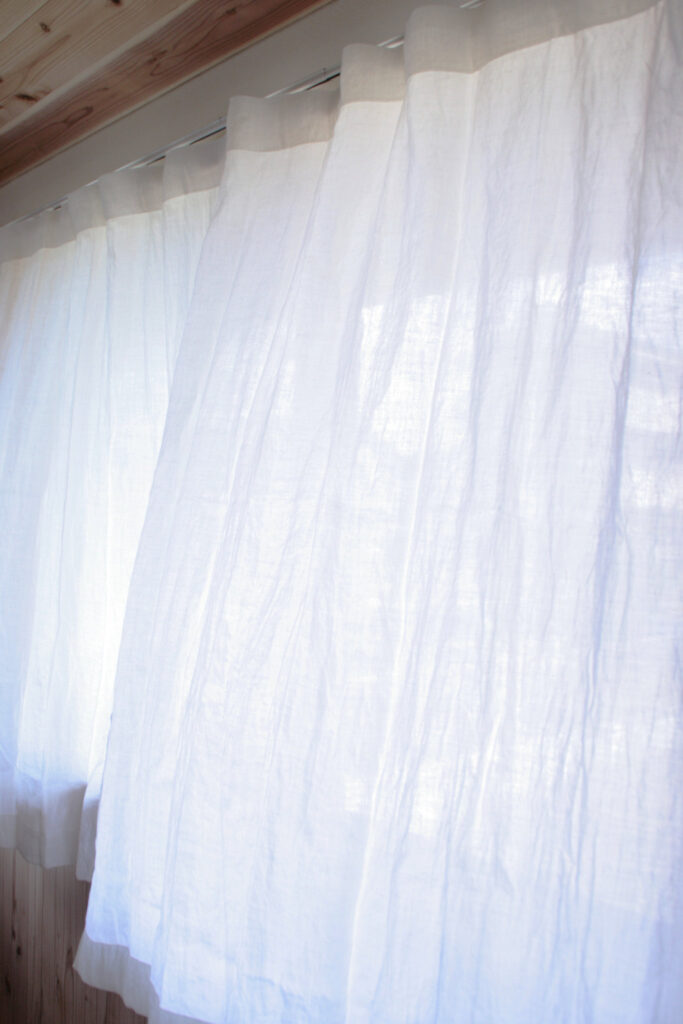 やはり漆喰や無垢の杉材などをふんだんに使った自然素材の家には、自然素材のリネンカーテンがとてもよく似合います。