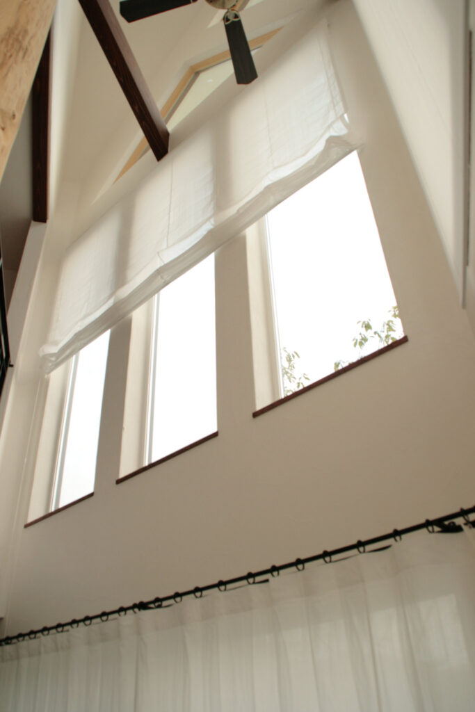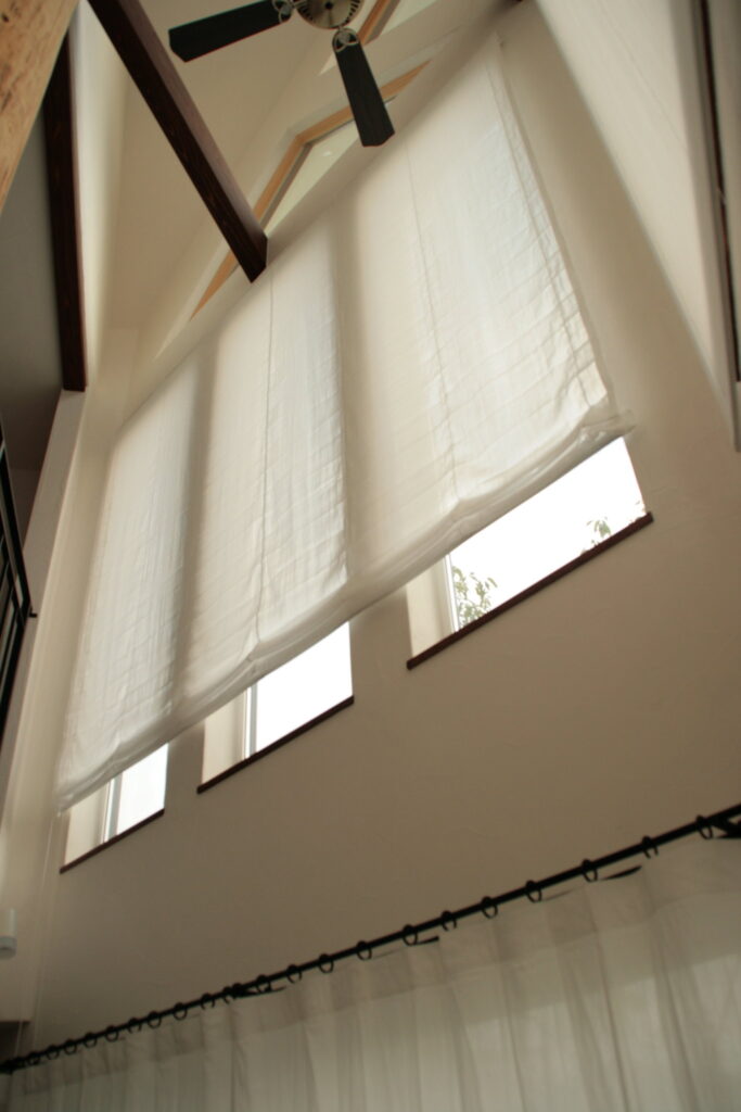 [静岡県浜松市] 吹き抜けの大きな窓にコットンシフォンのカーテン