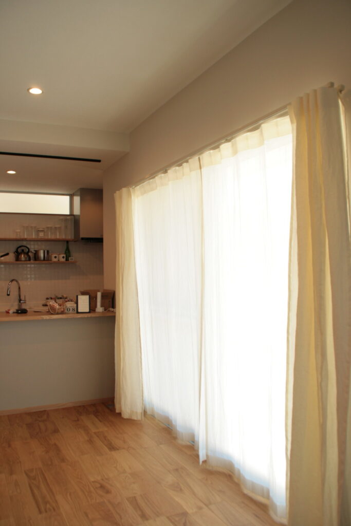 エクリュも黄身がかった色ですので、新築の家に新品のカーテンですが、ずっと使い続けてきたような雰囲気を出しています。