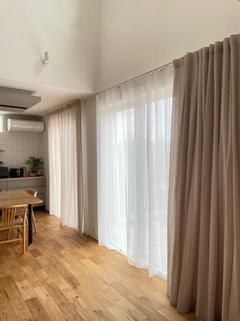 同じ面に並んで配置された2つの掃き出し窓は、それぞれ片開きにすることで2つの窓を1つに見立てて両開きのように見せるスタイルがおすすめ。
