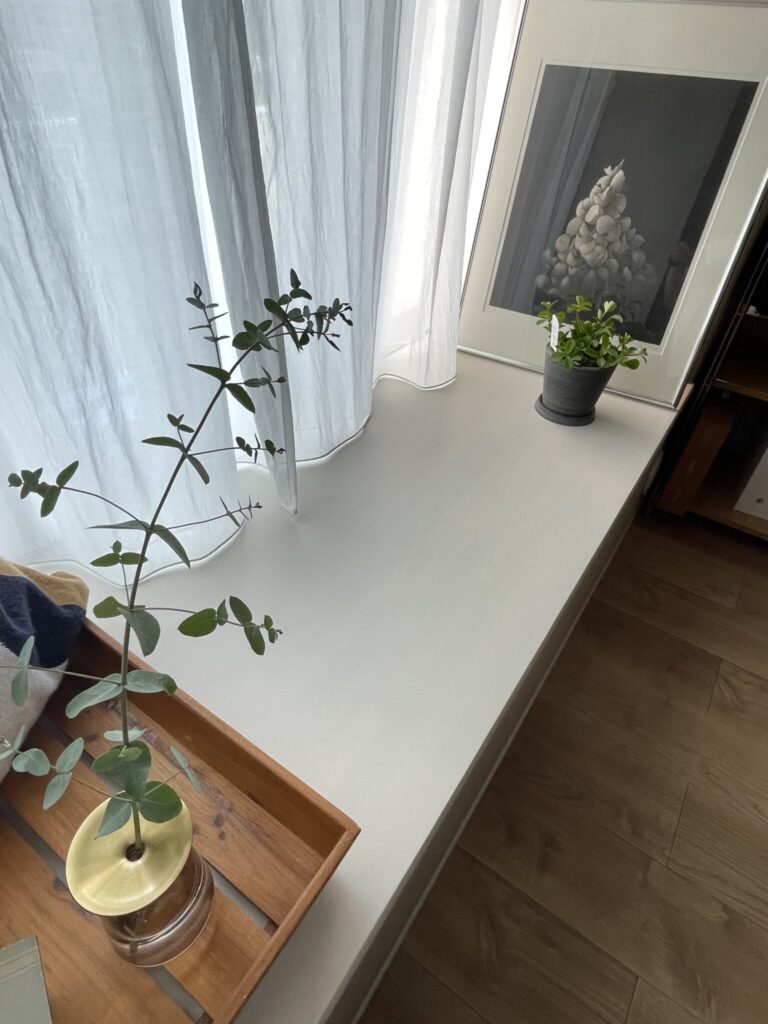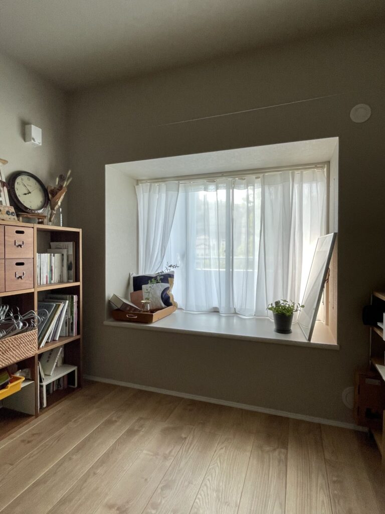 やわらかなカーテンで仕立てた出窓には、好みのアイテムを置くことでお気に入りの撮影ポイントに。