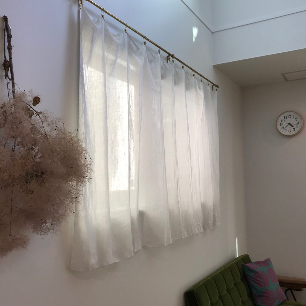 気になる事例は保存してインテリア作りにお役立てください。 お問い合せの際に、上記のコーディネートNo.を お伝えいただくとスムーズにご案内できます。 [ カーテン・Aフック ] ▫︎ 商品名:シアーリネン80 ▫︎ 色:オフホワイト ▫︎ スタイル:両開きカーテンクリップスタイル1.2倍 ▫︎ 丈:窓下20cm ▫︎ 裾:四方巻きロック仕上げ ▫︎ タッセル なし
