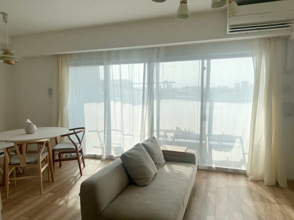 開けることで布が集まり、本来のクリーム色の表情が表れます。