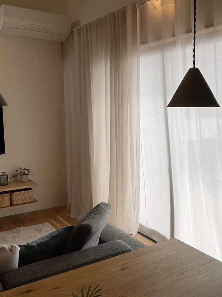 基本的に内装は固い物質に囲まれているので柔らかなカーテンの布感がお部屋をやさしい雰囲気にしてくれます。