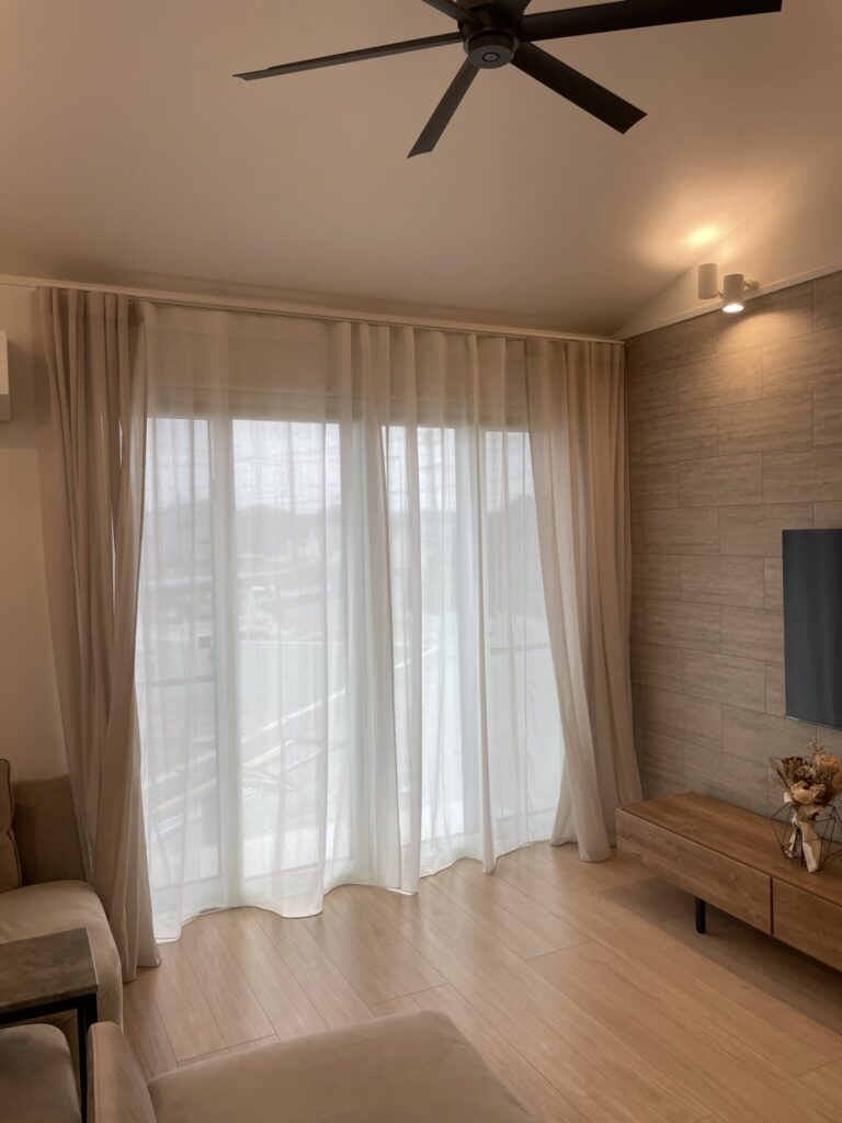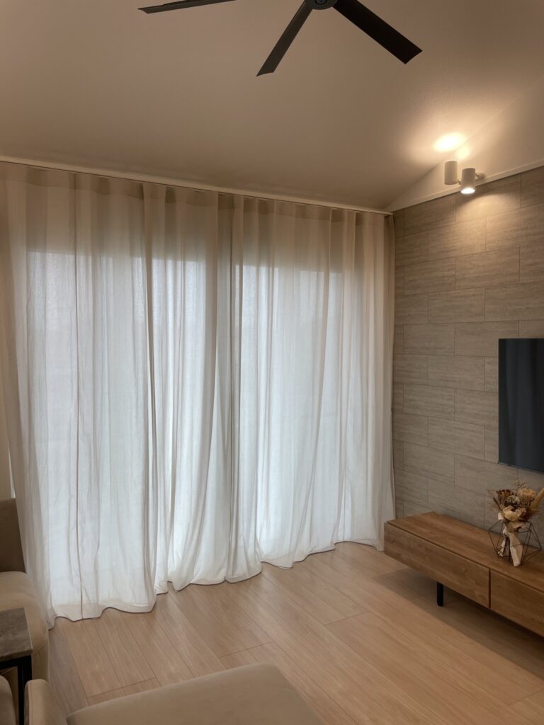 日中は閉めていてもふわっと光が透けて入ります。
