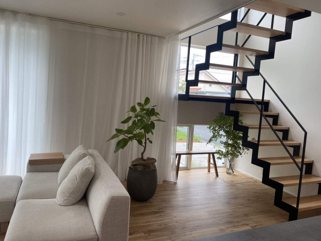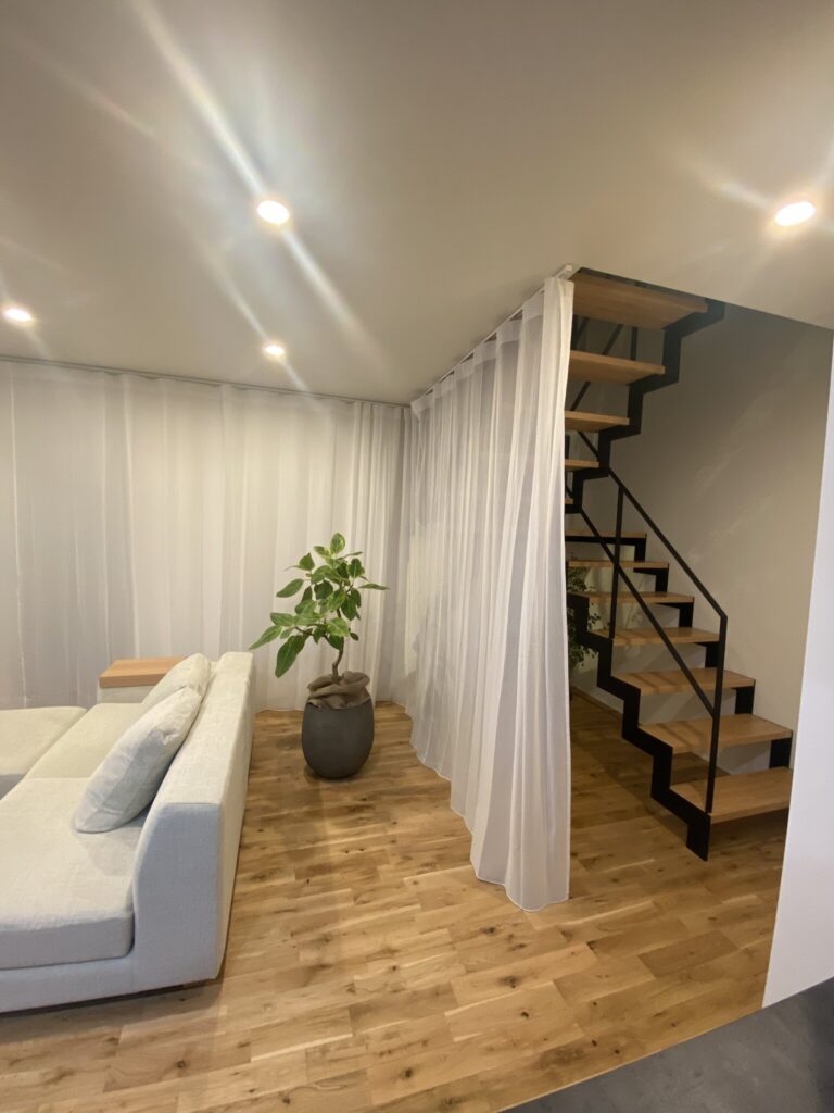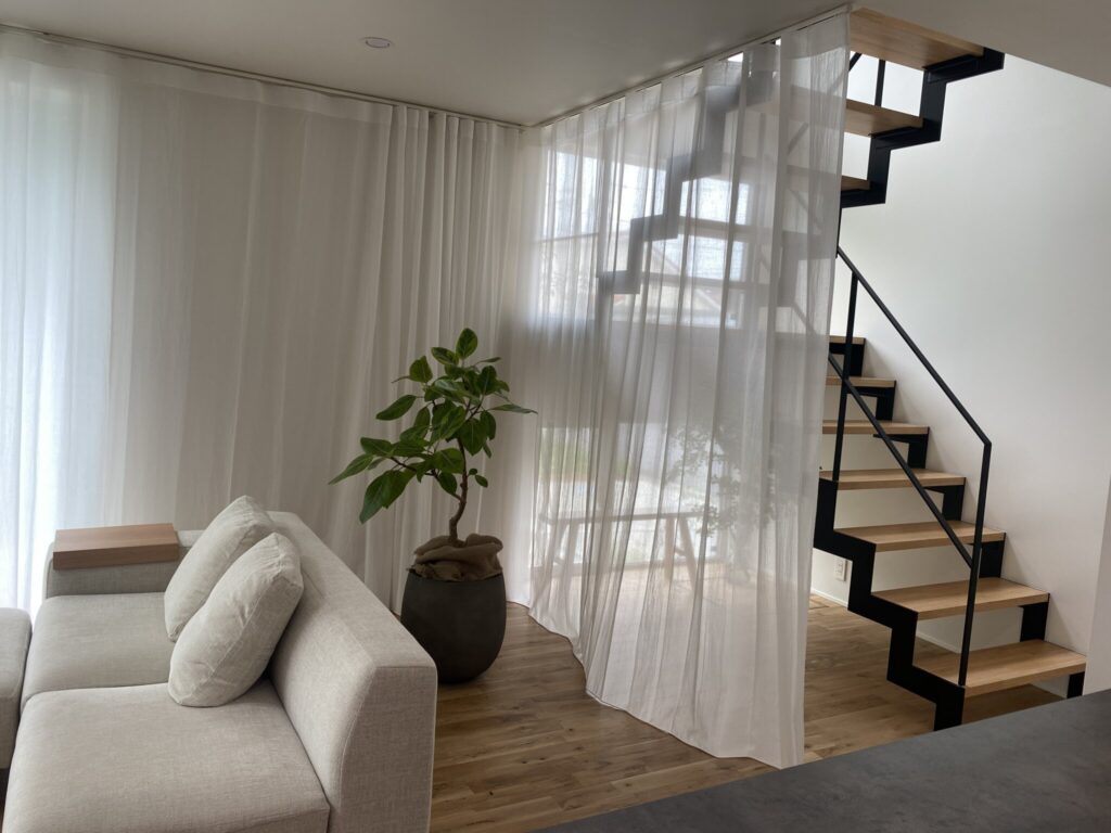 本来壁の面積もカーテンで覆うことによって、空間全体の柔らかい印象を作っています。