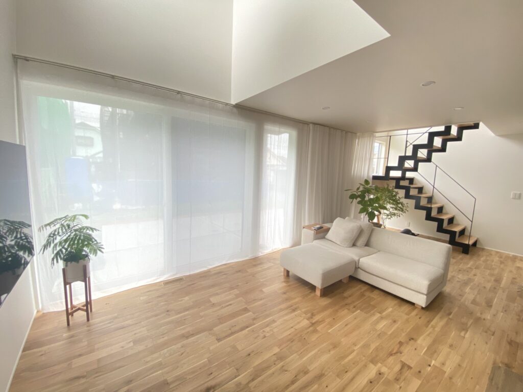 こちらの事例は窓の横の壁一面もカーテンで覆っていますが、