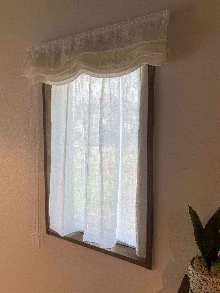 シングルプレーンシェードと枠内レースカーテンの組み合わせ事例。