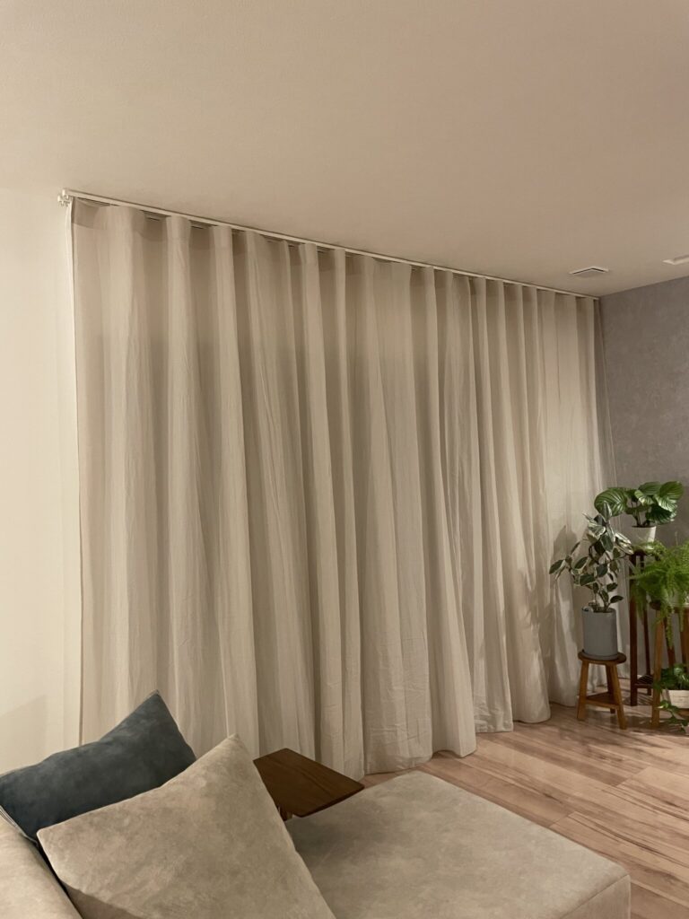 コットンシフォンは光によって色が違って見える、不思議なカーテンです。