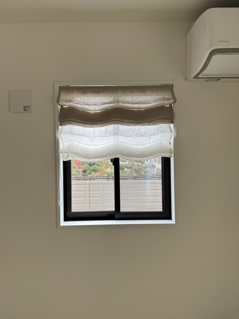 小窓はカーテンタイプが似合わないため、プレーンシェードをおすすめすることが多いです。