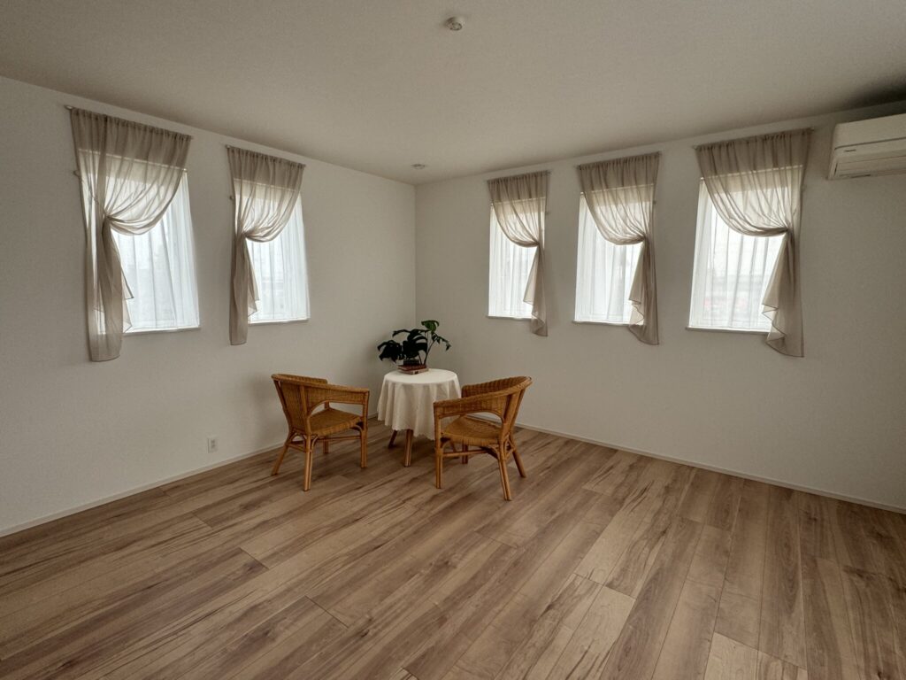 ポール通しスタイルのドレープ・レースをそれぞれ正面付けと窓枠内付けで分けて設置しました。