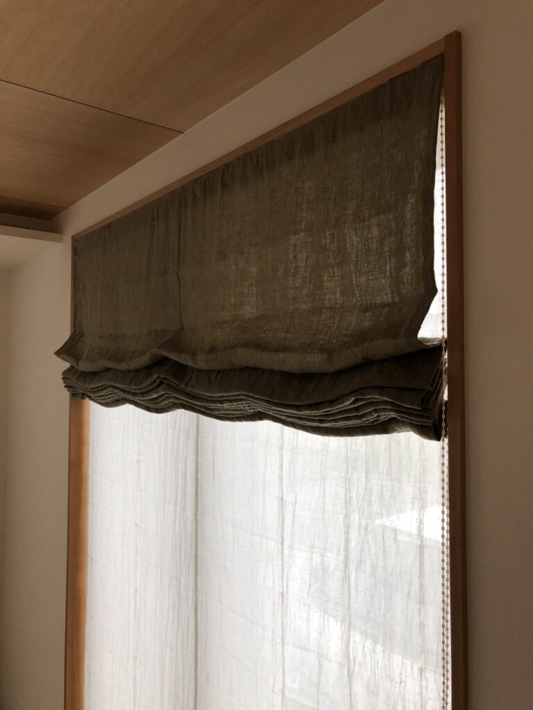 曲線を描くカーテンよりも、フラットなシェードがよく馴染みます。