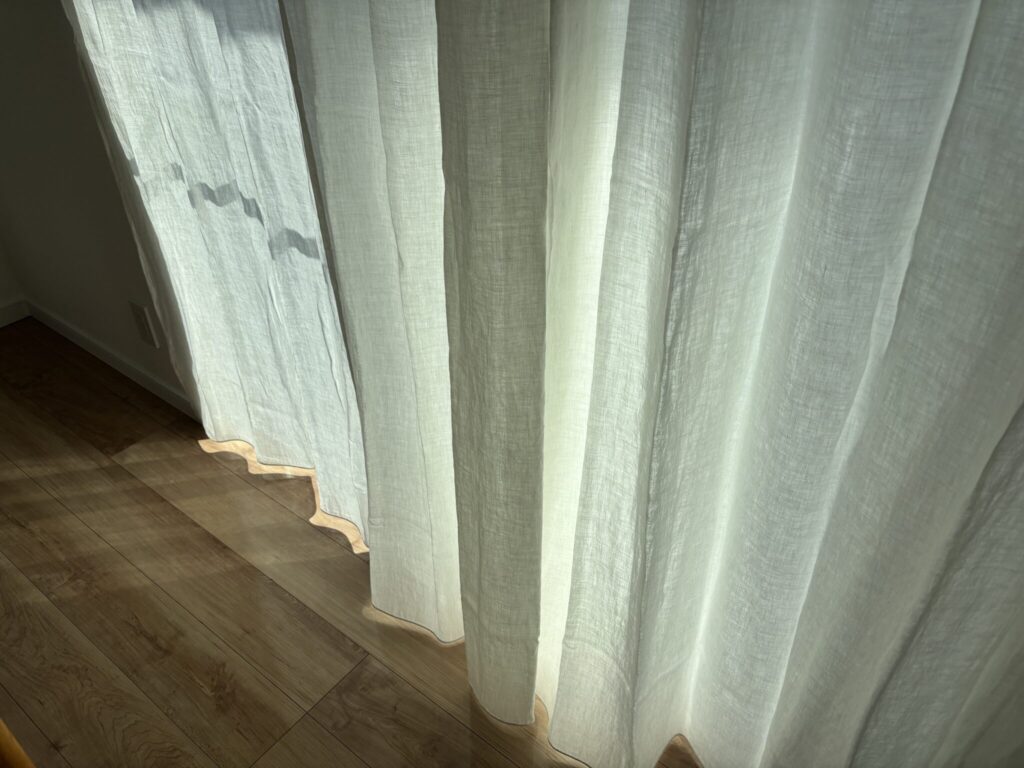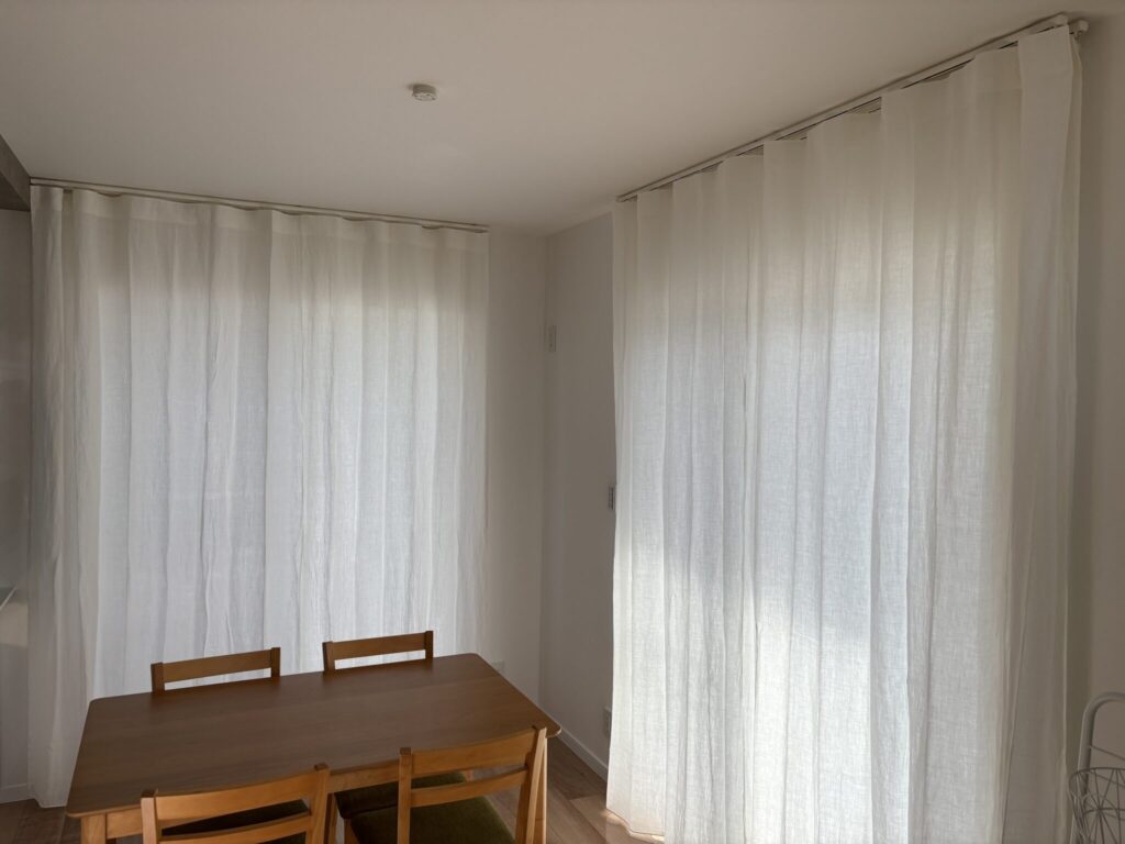 このような場合は、コーナーにカーテンの溜まりが来ないように、