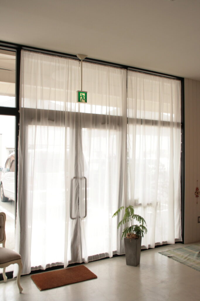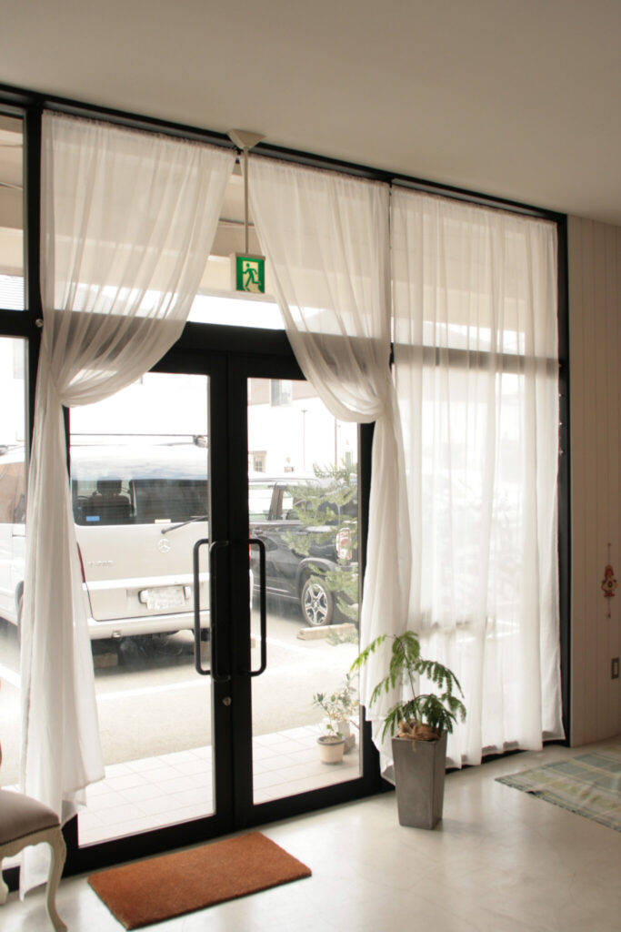 カーテンひとつでお店の雰囲気がガラリと変わりました。