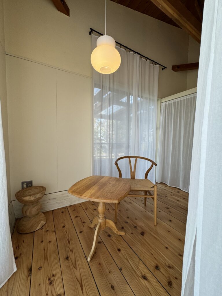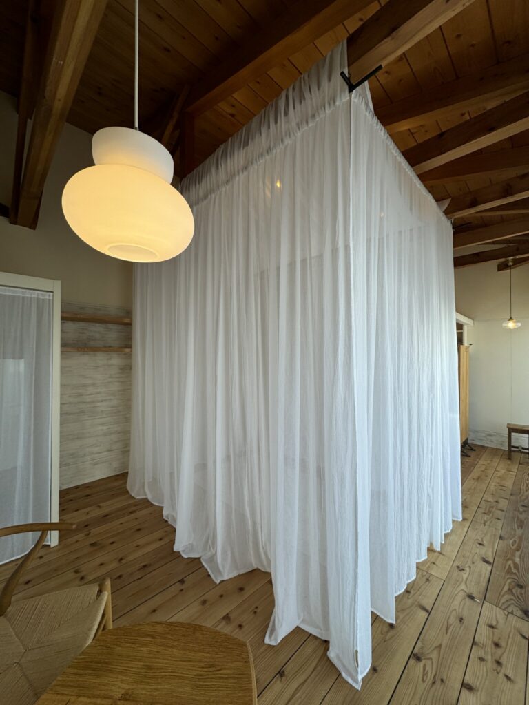 室内の内装も自然素材を使われているので、コットン100%のカーテンとともに、